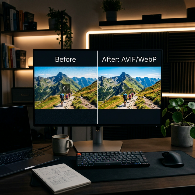 Hasta hace poco, el debate era JPEG vs PNG. Hoy, ese debate está obsoleto. WebP ya tiene un soporte global en navegadores del 96%, y AVIF ha alcanzado una masa crítica de soporte. Cambiar toda la biblioteca multimedia de un sitio web a estos formatos de próxima generación puede reducir el tamaño de la página a la mitad instantáneamente, sin ninguna pérdida de nitidez visible para el ojo humano.